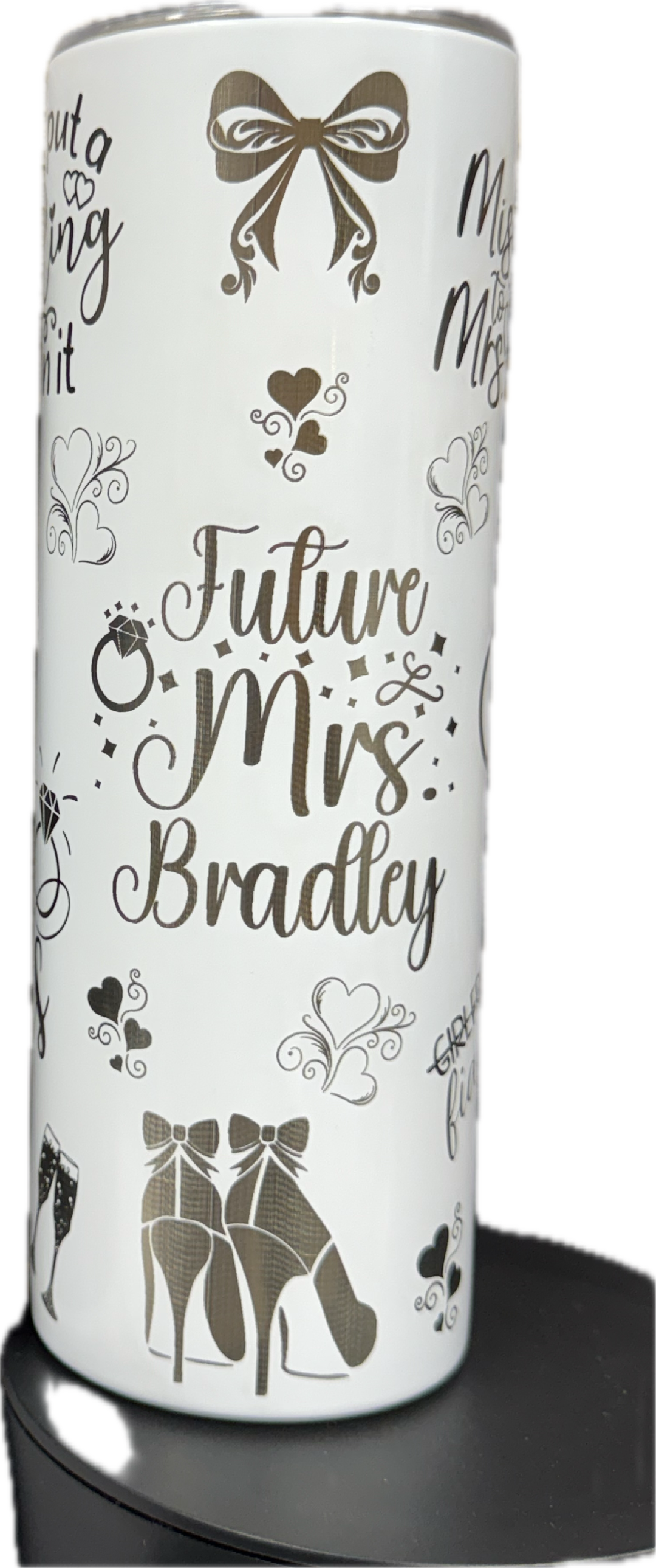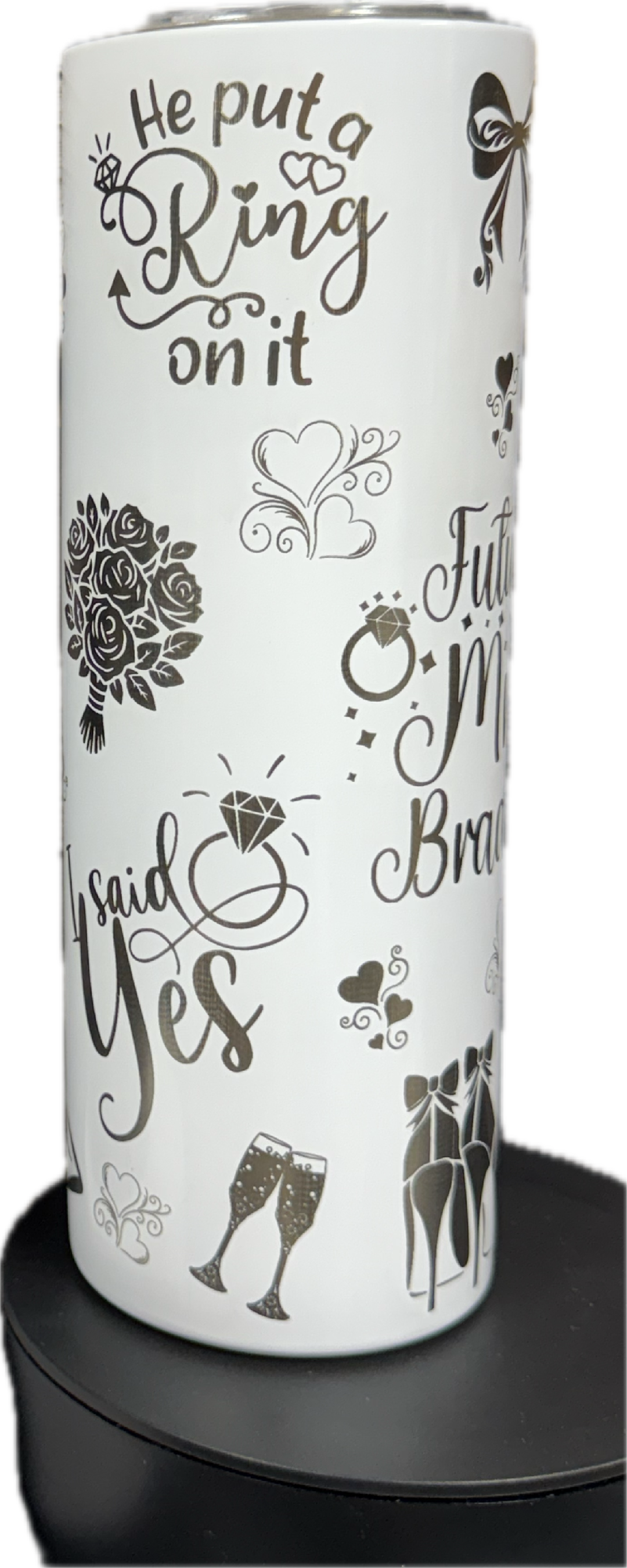 Celebrate her special journey with our elegant 20 oz White Stainless Steel Tumbler, beautifully engraved for the Bride-to-Be!