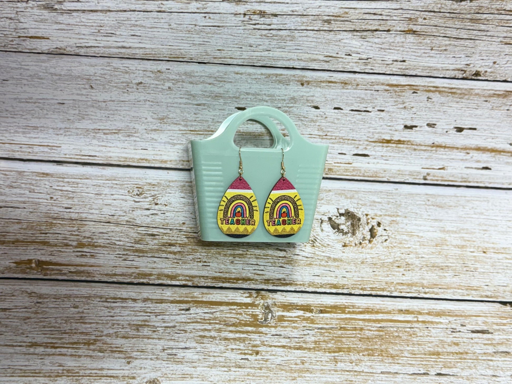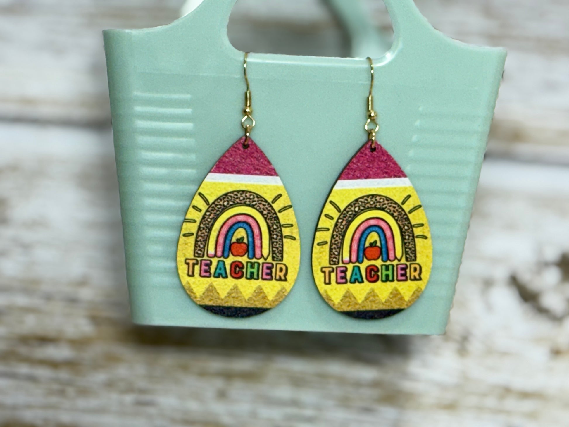 Teacher Pencil Rainbow Wood Earrings – A+ Style for the Classroom!